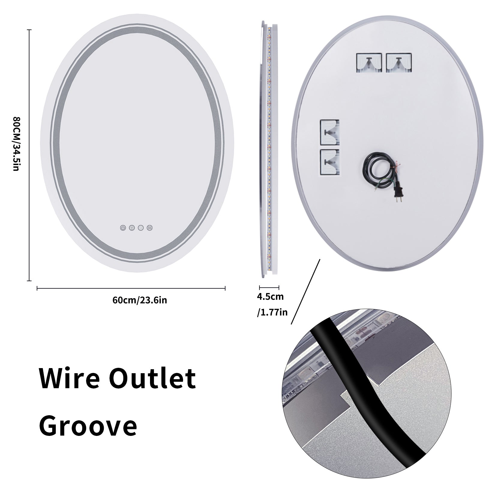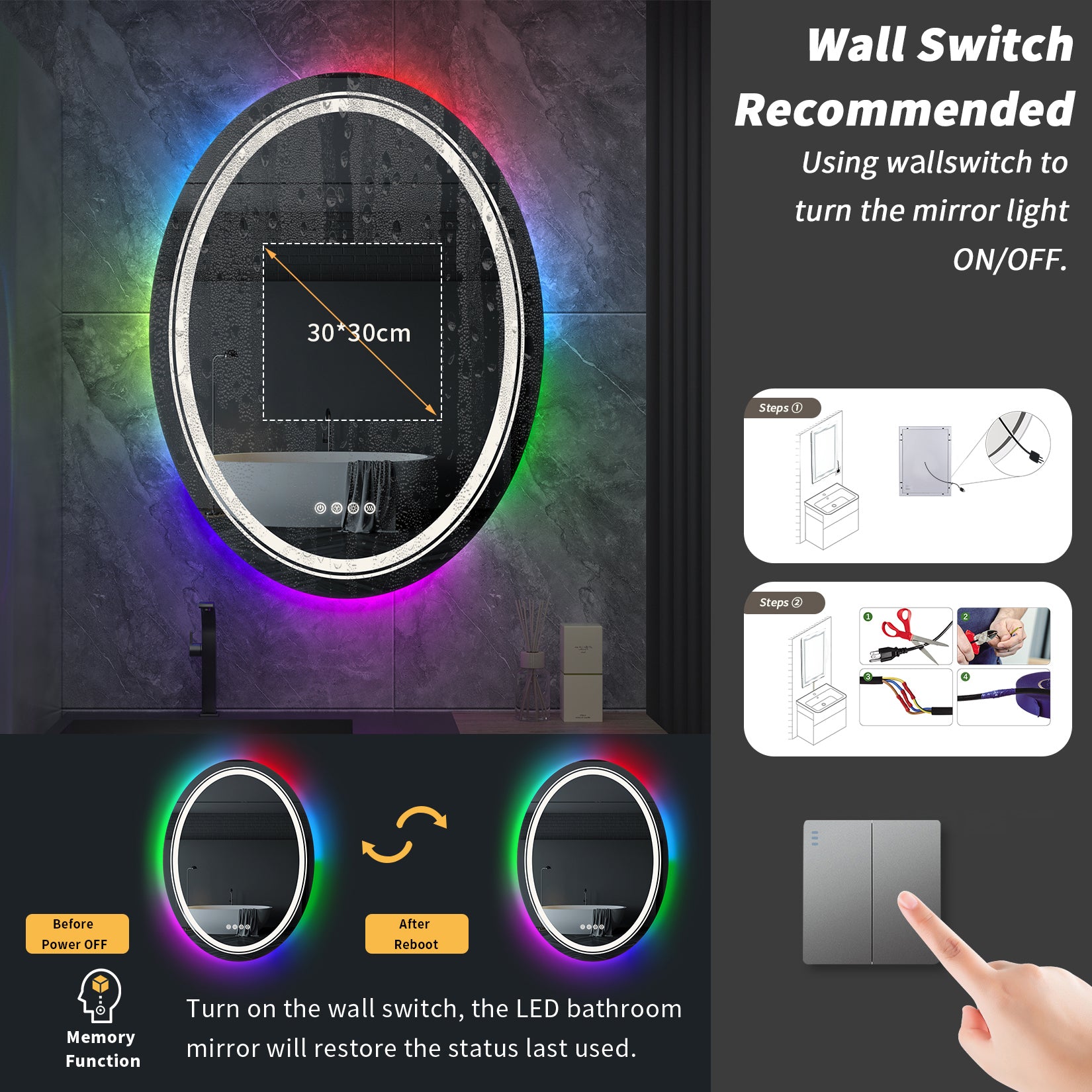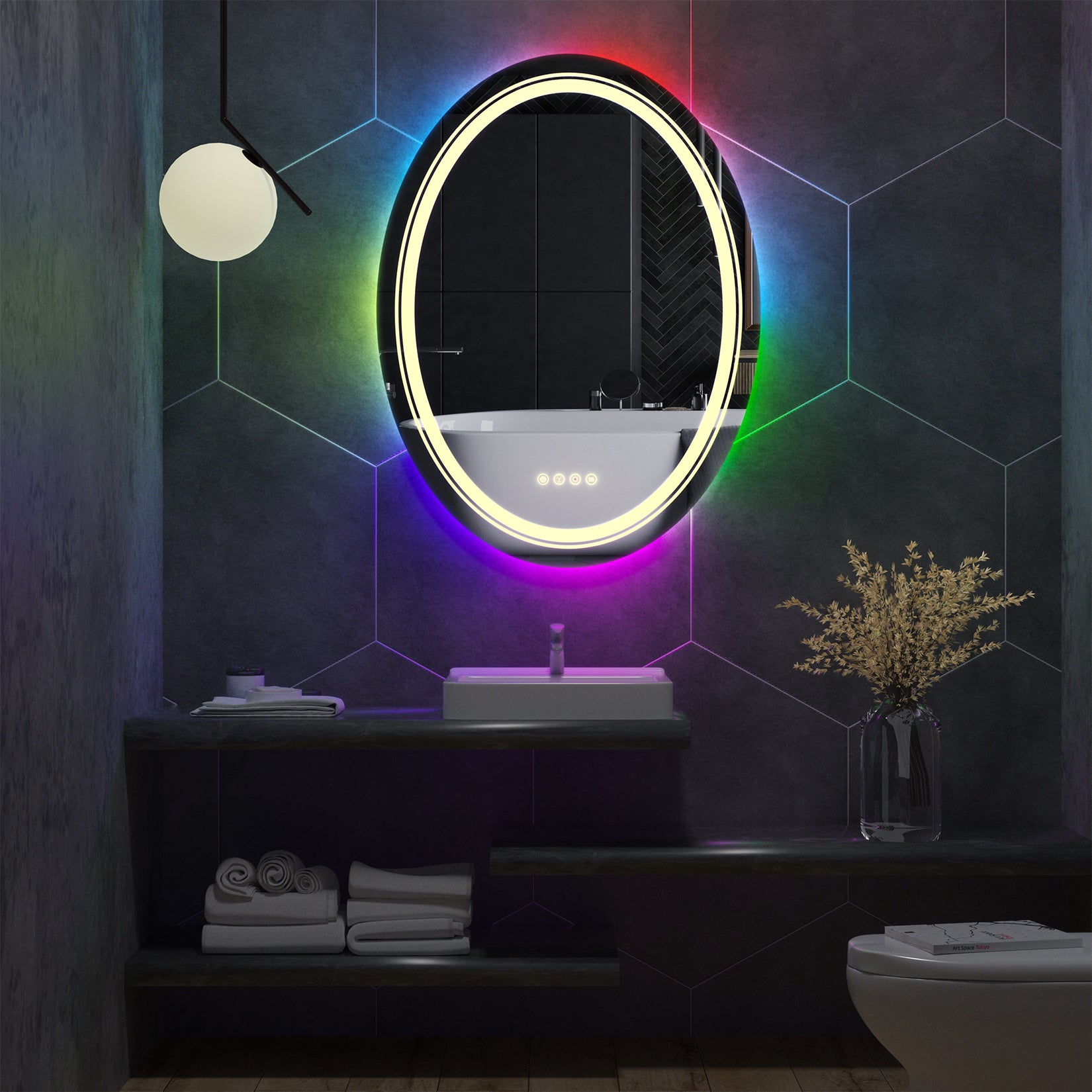 LUVODI 60x80cm Oval LED Bathroom Mirror with 8 RGB Backlit 3 Front Light Color Smart Defogging TouchCRI>90