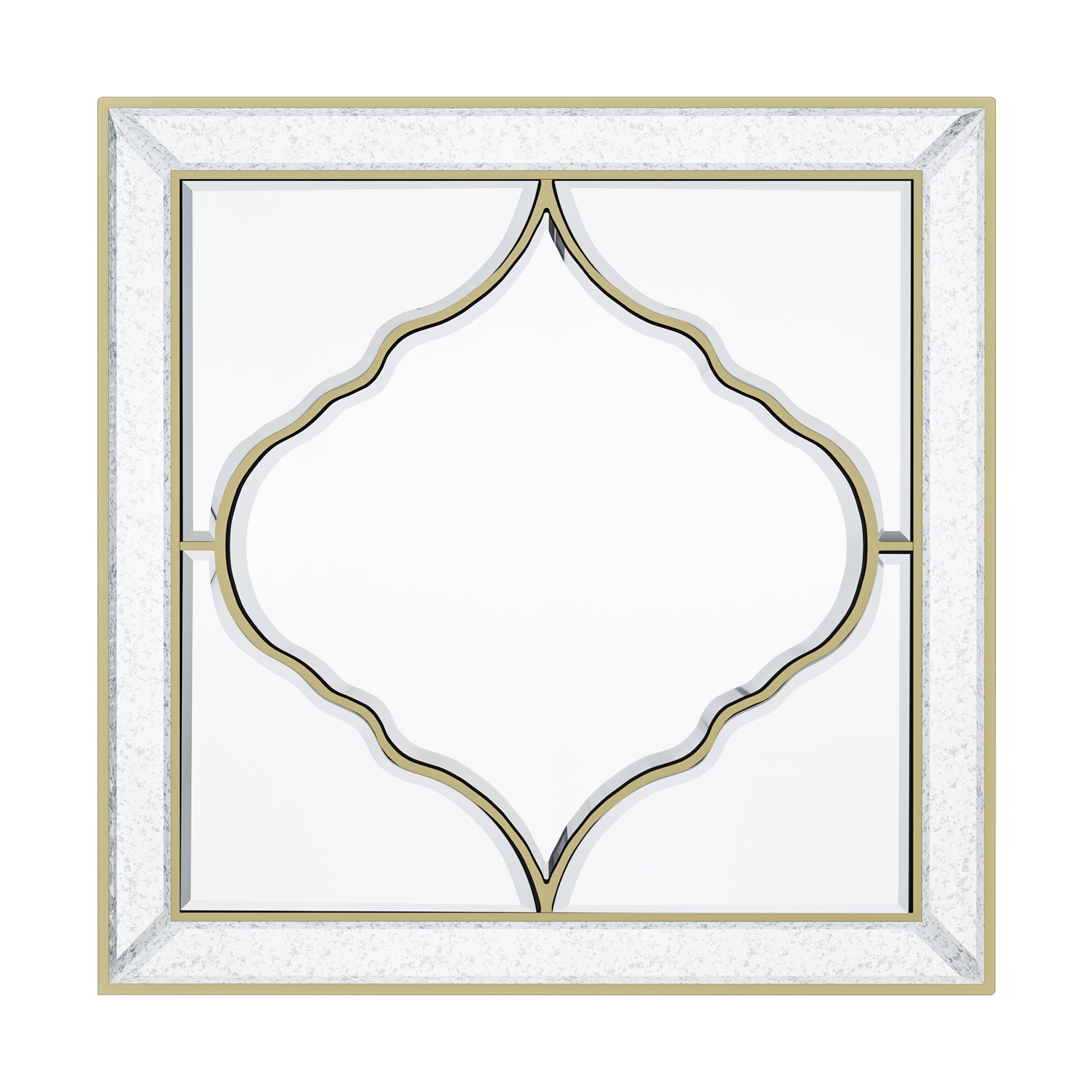 Elegant Square Wall Silver Glass Decorative Accent Mirror Golden Rim for Hallway