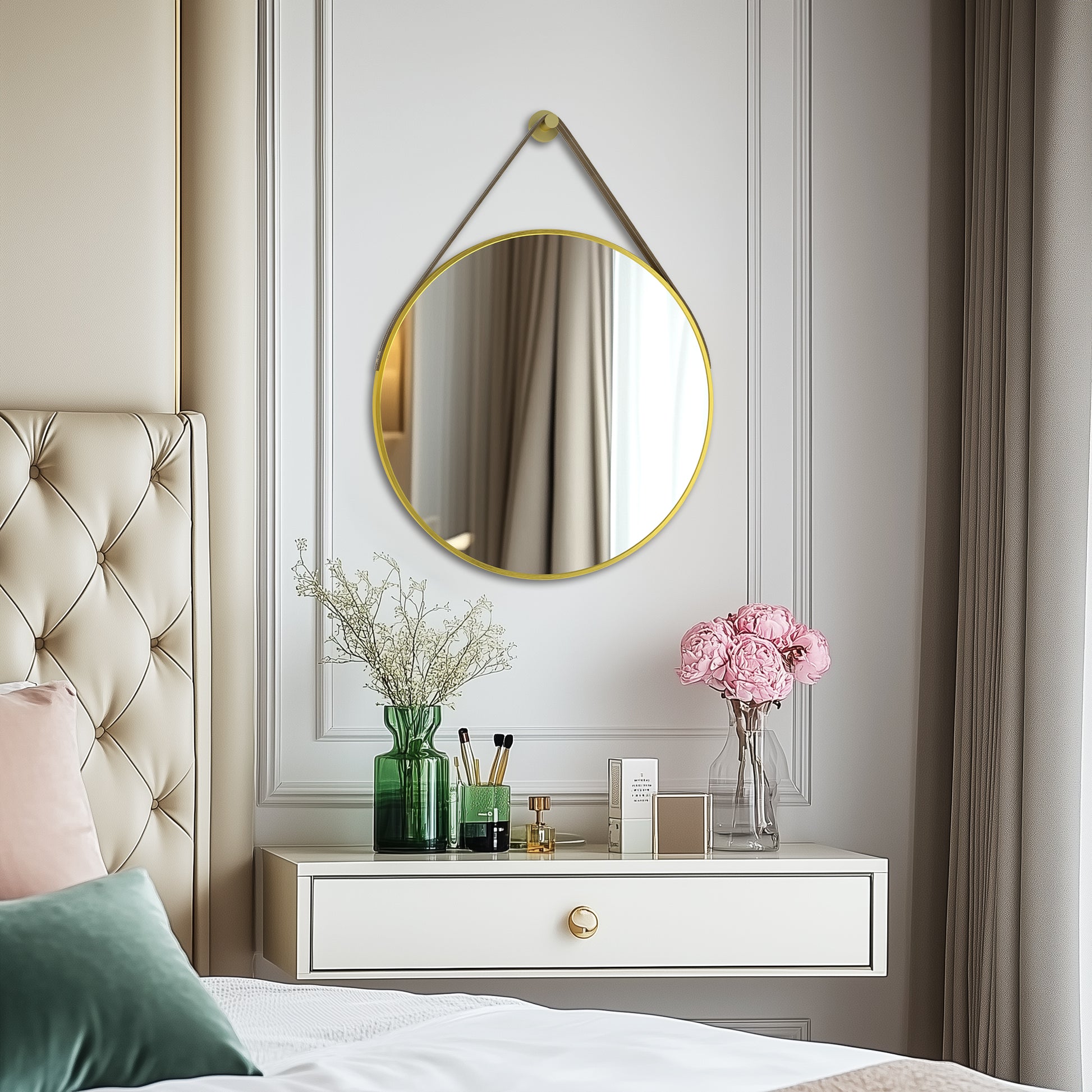 Gold Round Mirror With Hanging Rope For Living Room, Bedroom, Entryway