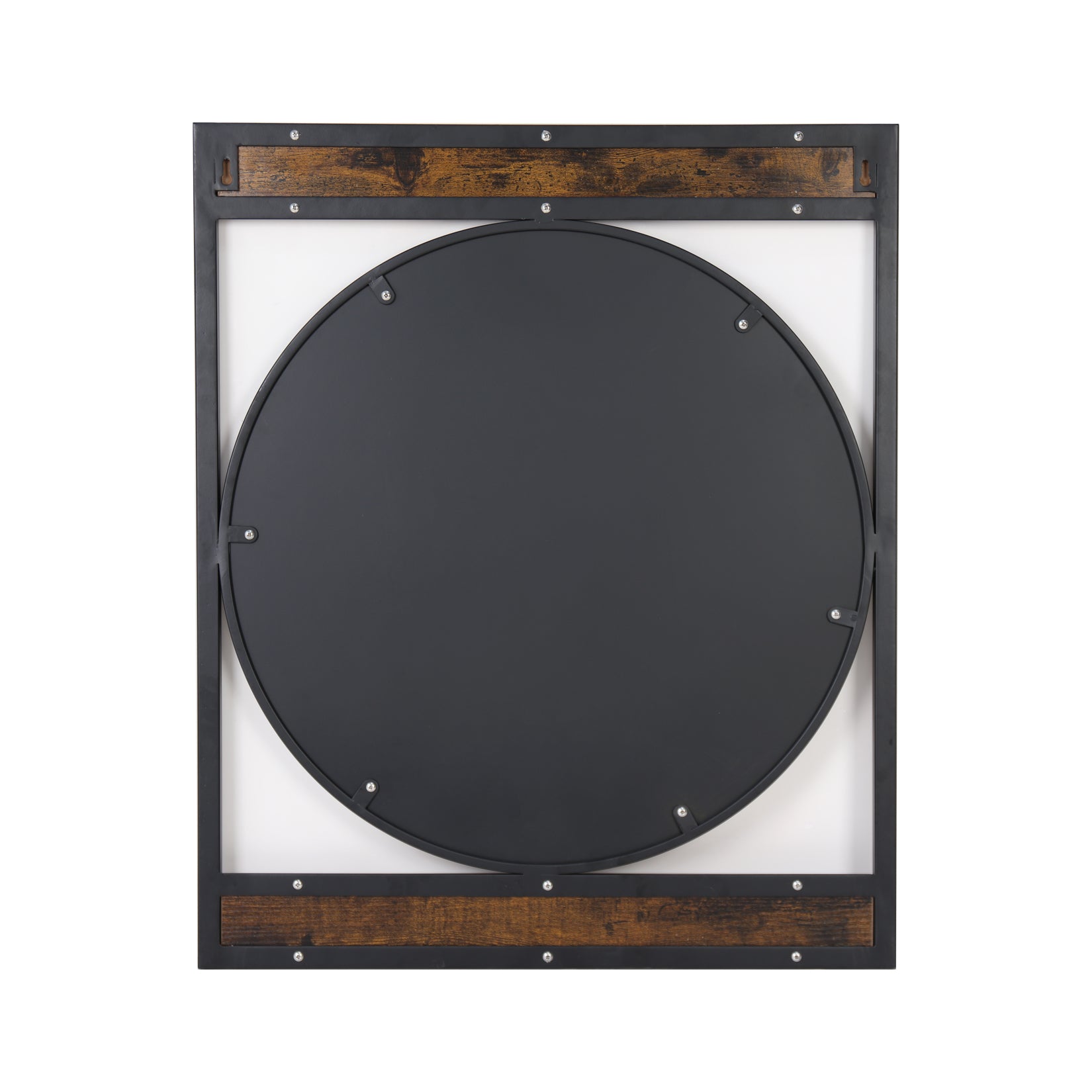 Industrial Retro Metal Round Wall Mirror with Square Wood Frame