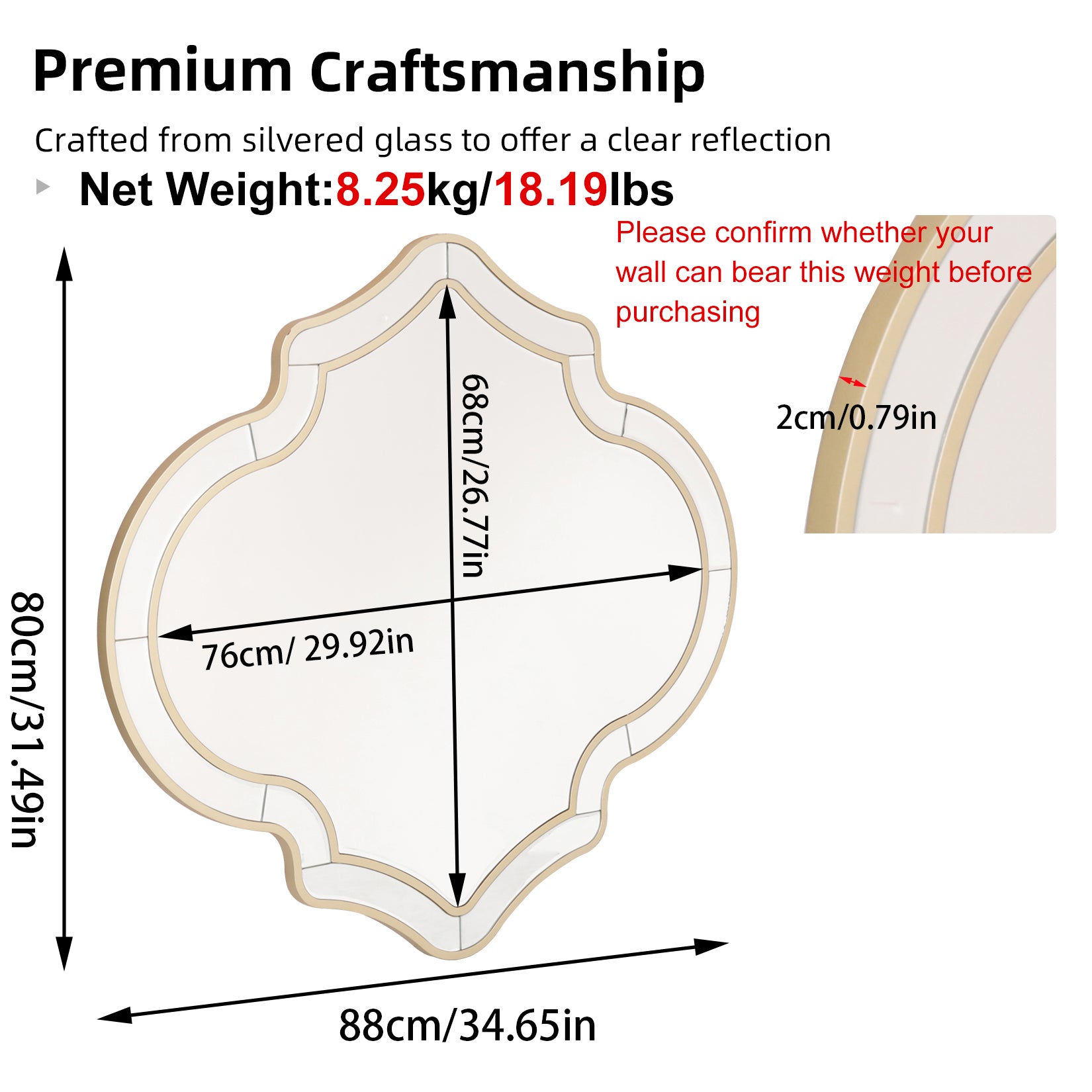 Irregular Silver Wall Decor Mirror Golden Rim for Hallway 31”x34”