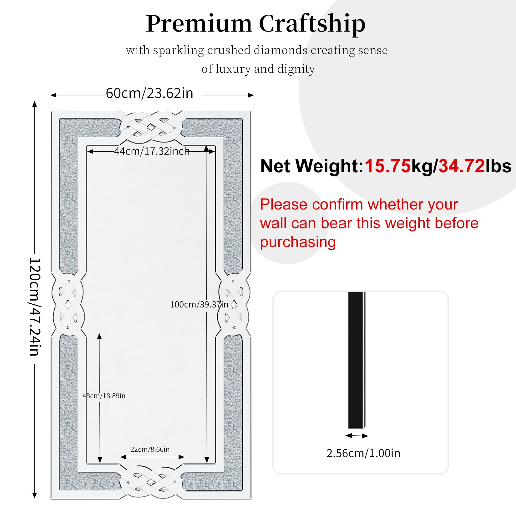 Large Crystal Crush Diamond Mirror for Wall Decor for for Living Room Bedroom Entryway