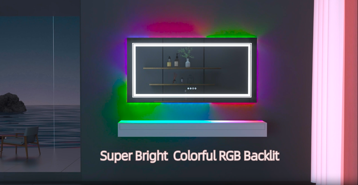 LUVODI Rectangular LED Bathroom Mirror with 8 RGB Backlit 3 Front Light Color Smart Defogging Touch