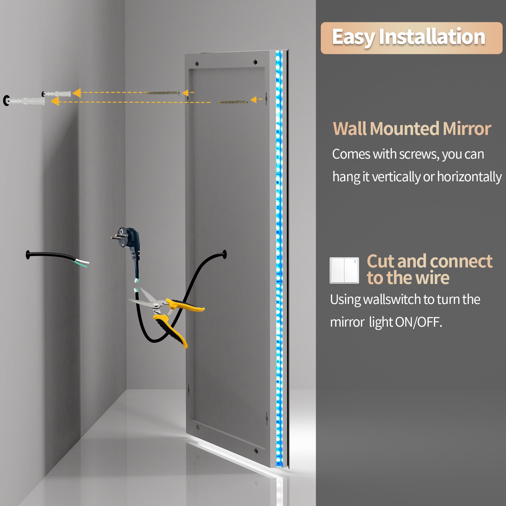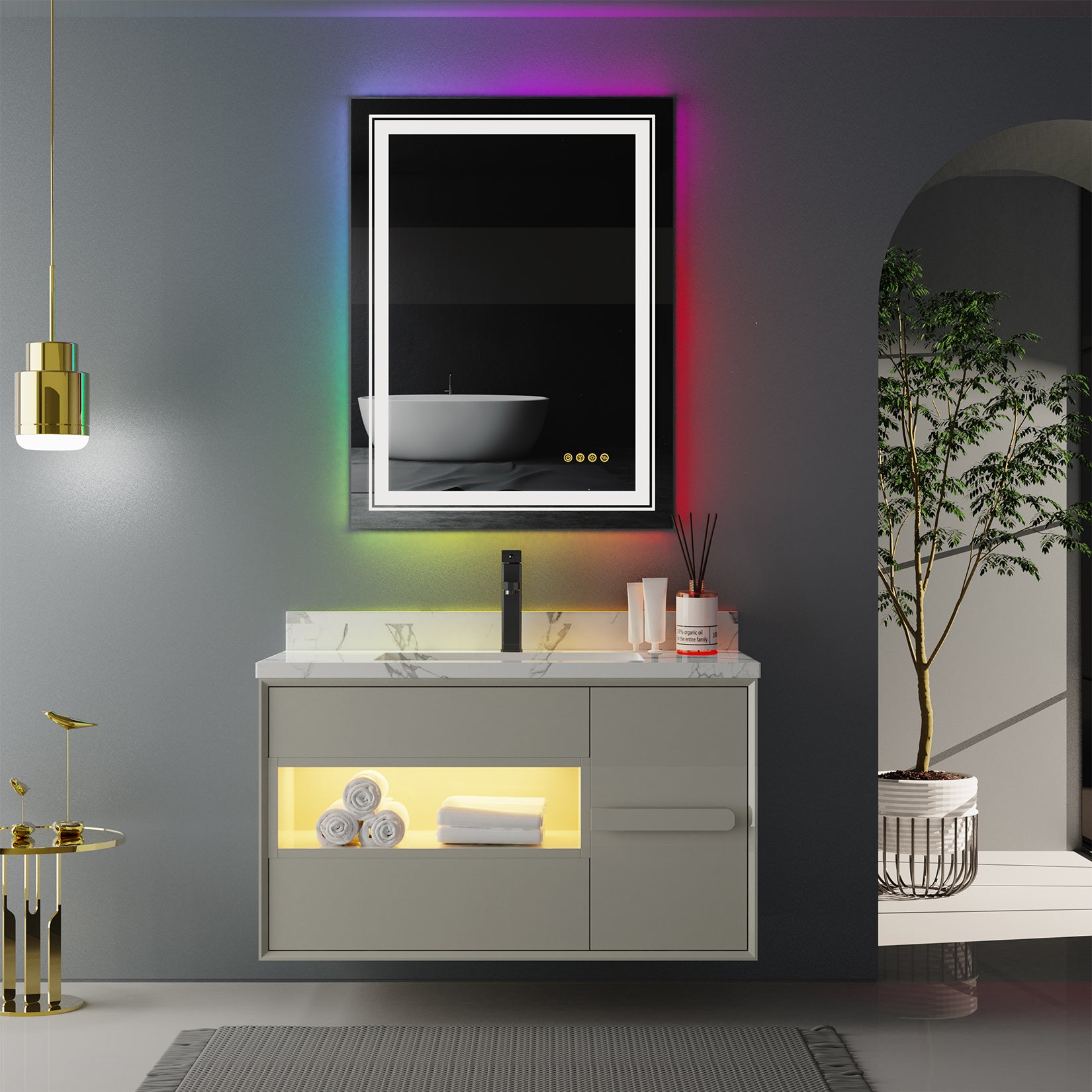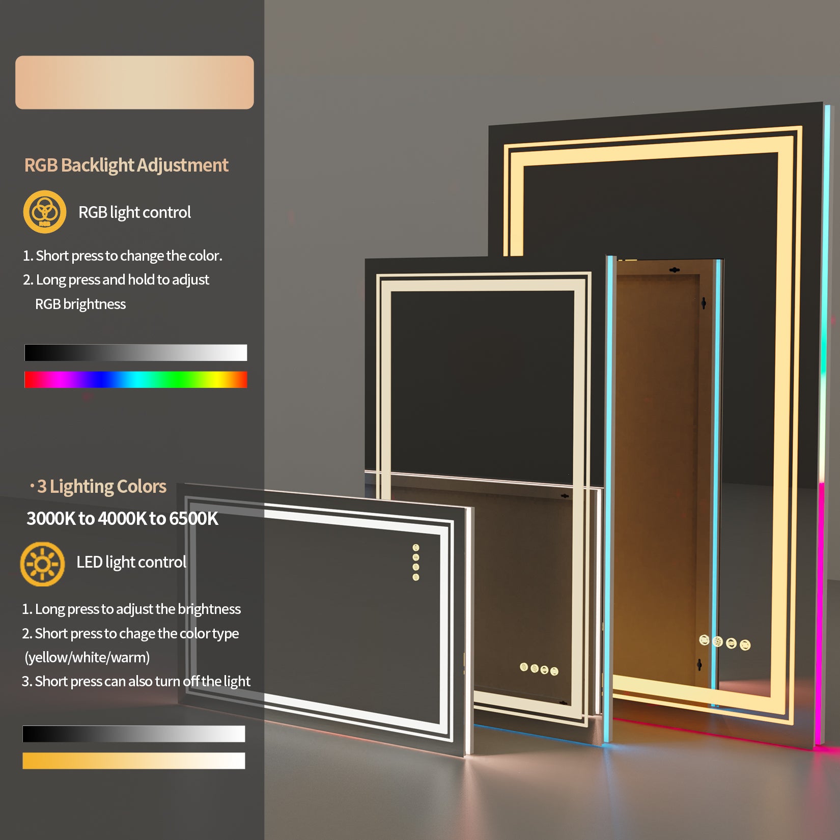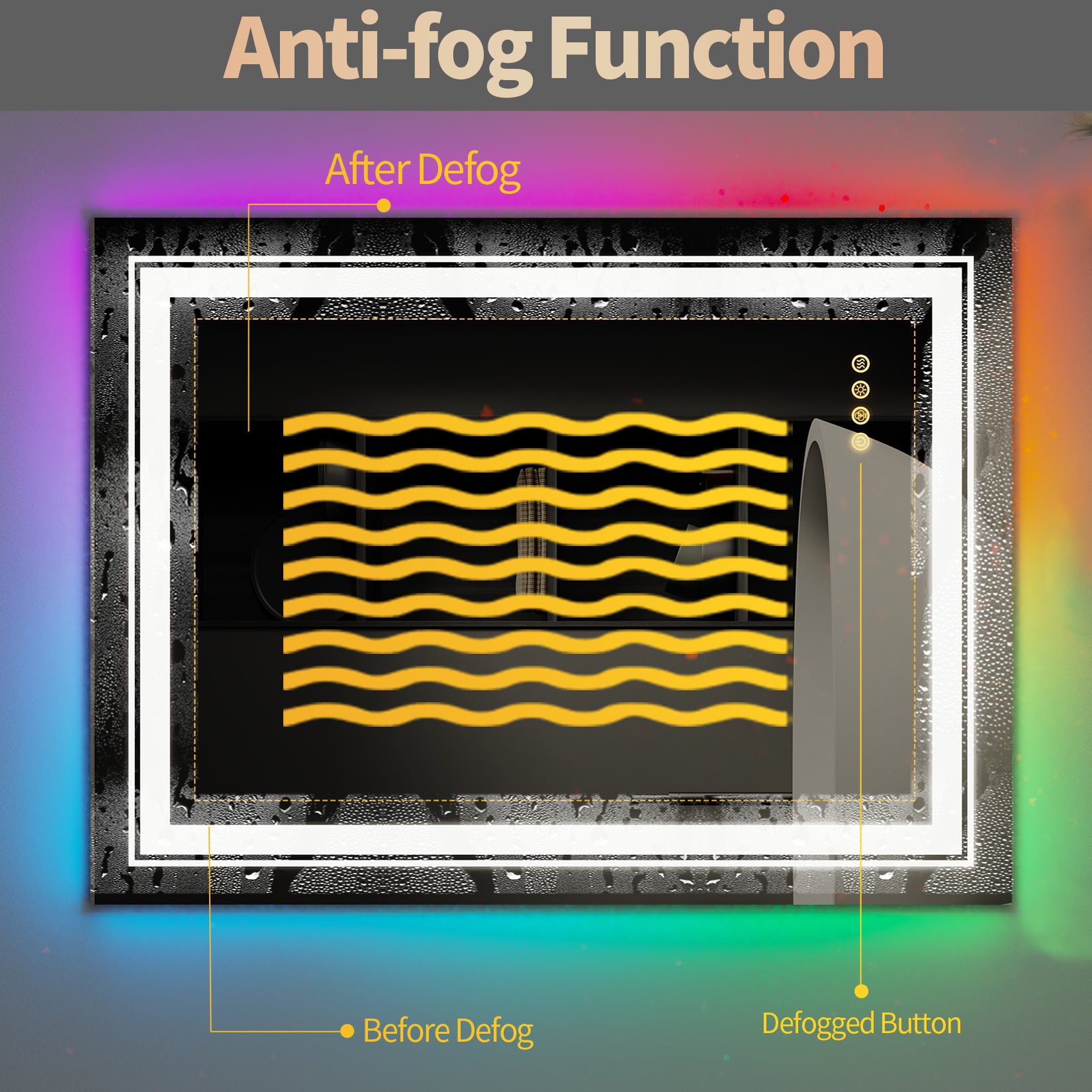 LUVODI Rectangular LED Bathroom Mirror with 8 RGB Backlit 3 Front Light Color Smart Defogging Touch