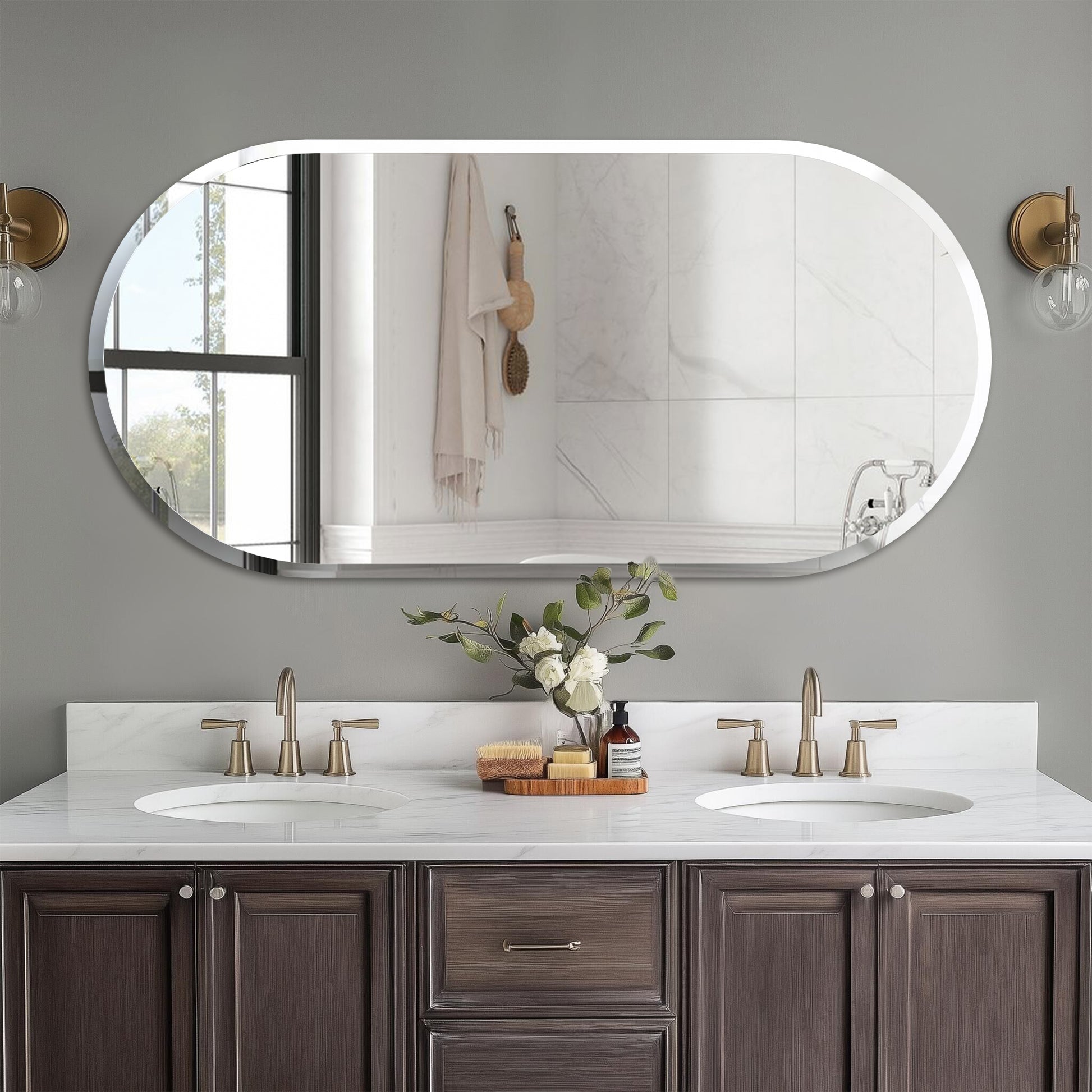 Long Oval Wall Hanging Glass Mirror with Beveled Edge