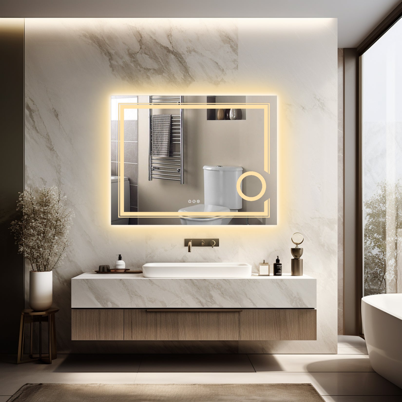 LUVODI LED Bathroom Mirror 3X Magnifier Dimmable Front Light + Backlit Defogging , Memory Function