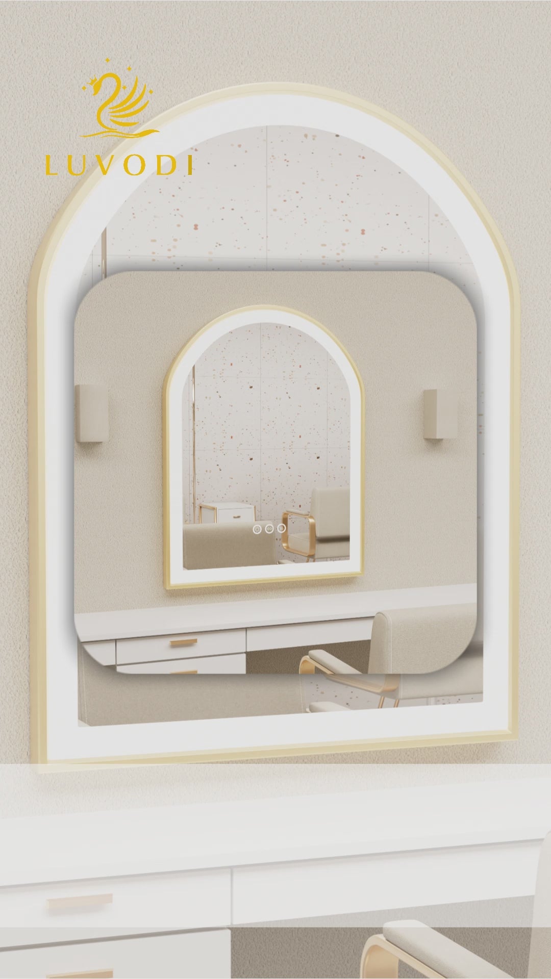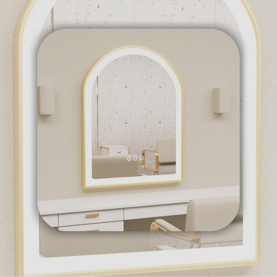 LUVODI Arched LED Bathroom Mirror with Gold Aluminum Alloy Narrow Frame Defogging 3 Color