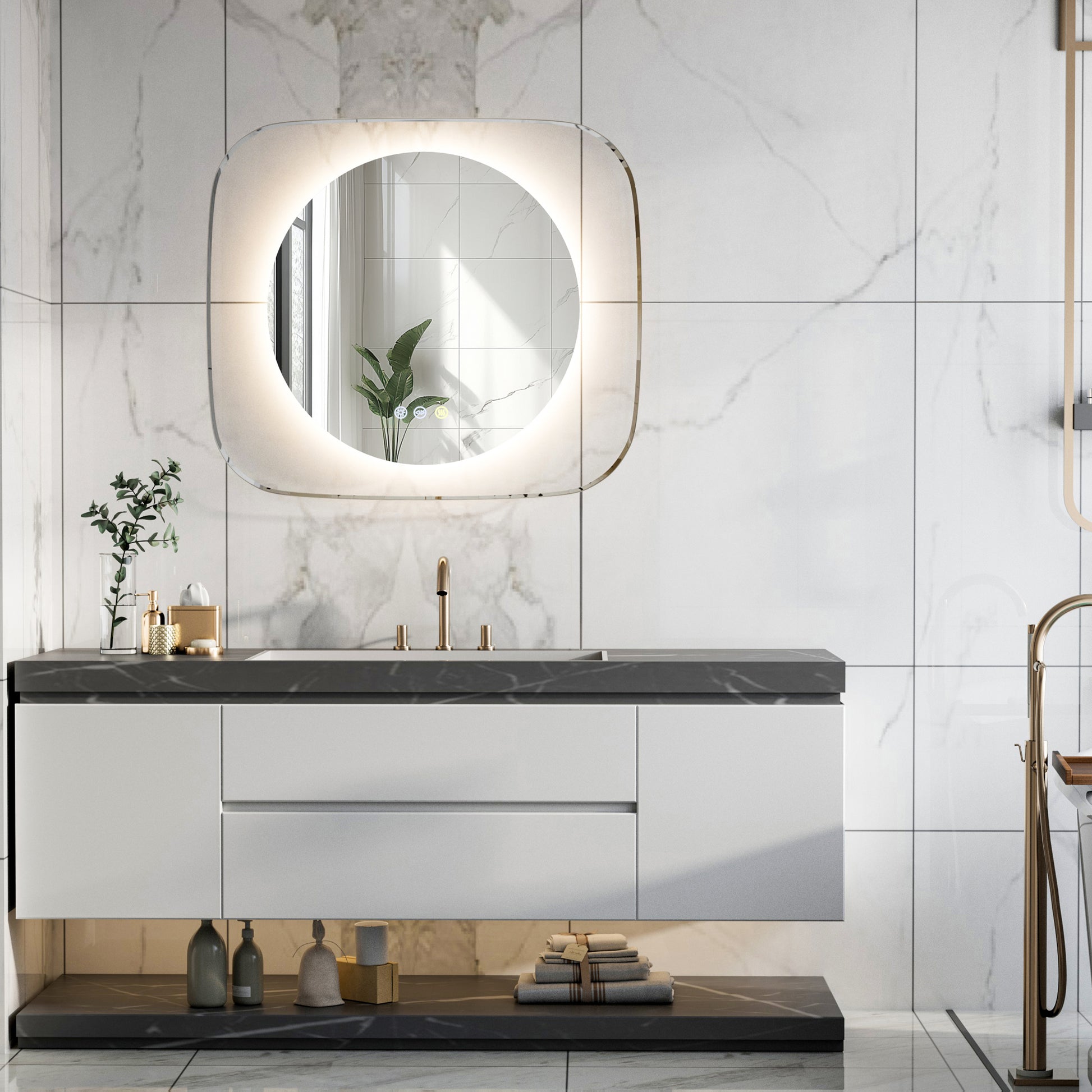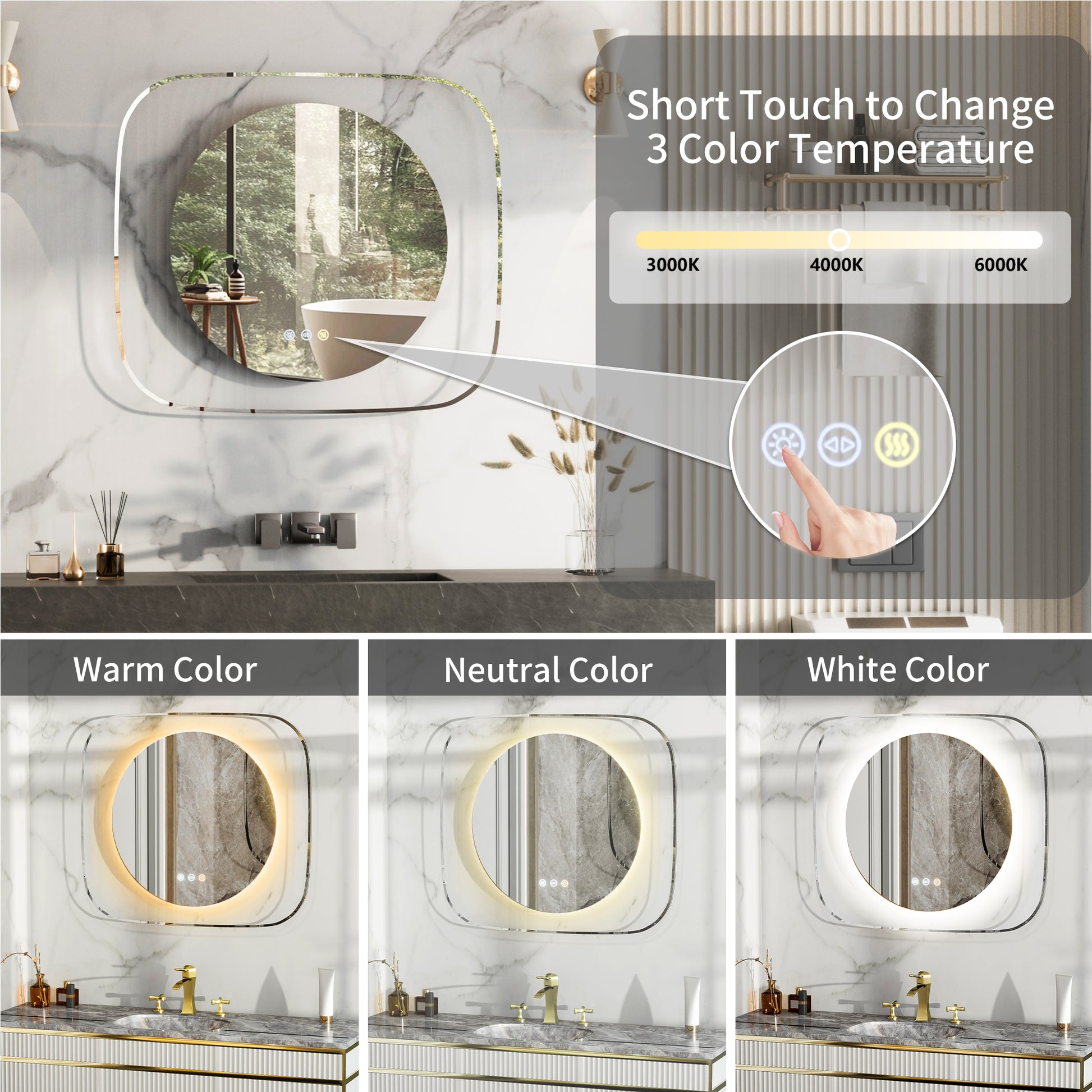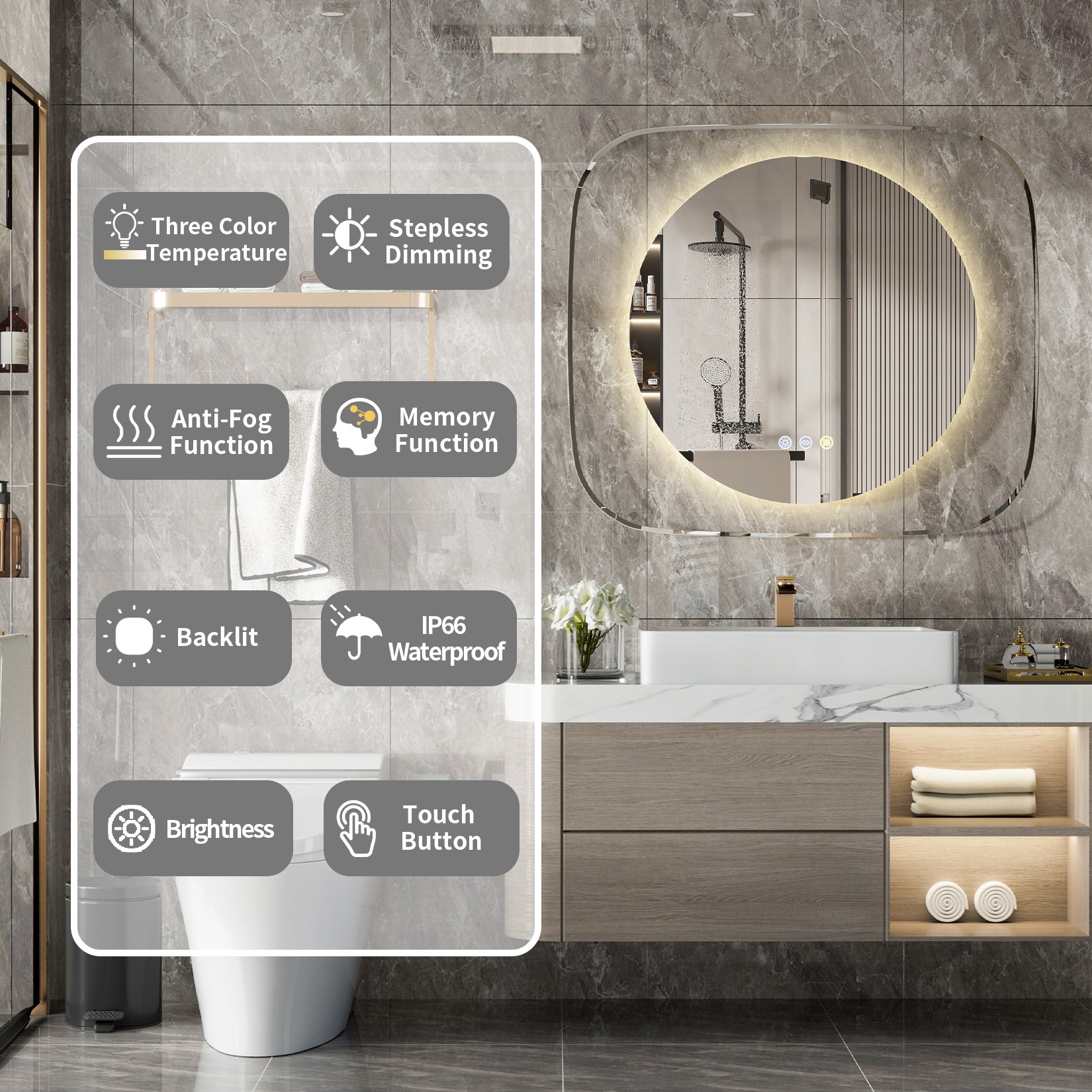 Features: Clear Glass, Touch Sensor, Anti-Fog, Backlit Light, Led Strip