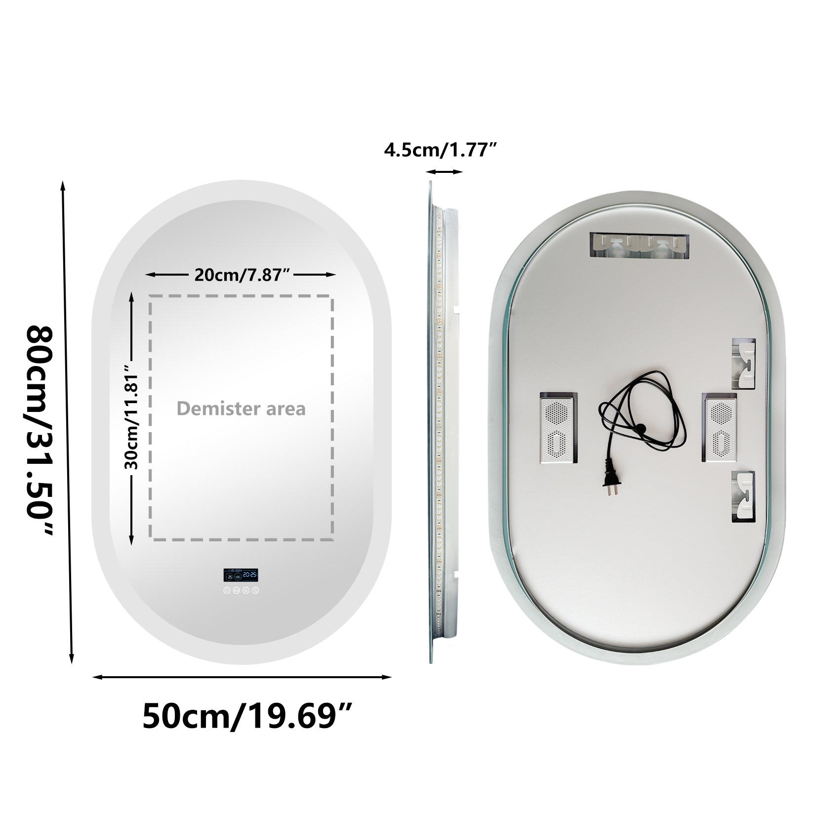 LUVODI Oval Bluetooth Bathroom Mirror 500*800mm Bluetooth Speaker Mirror Vertically Hanging