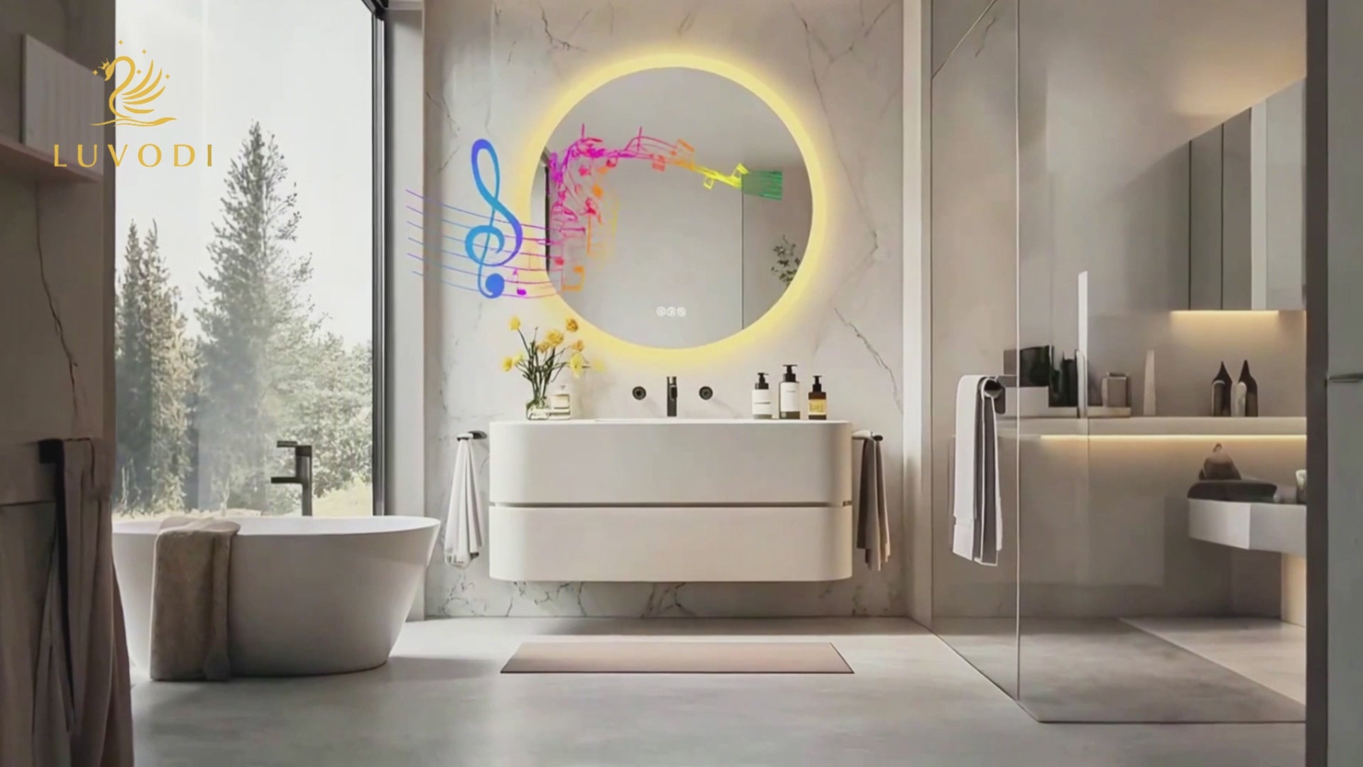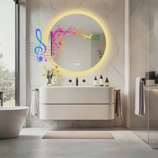 LUVODI Round Bluetooth Bathroom Mirror with Speaker, No Display 31.5 in