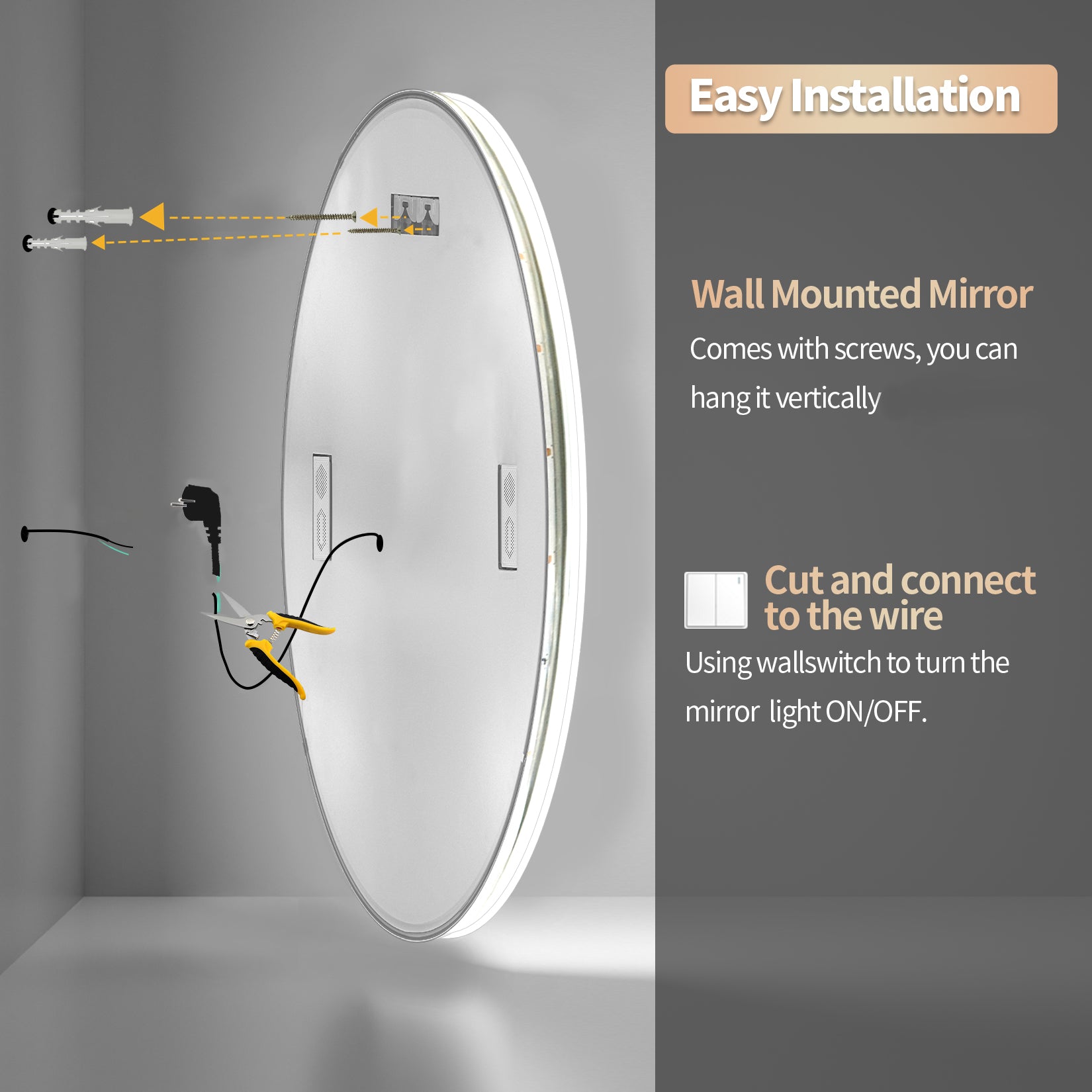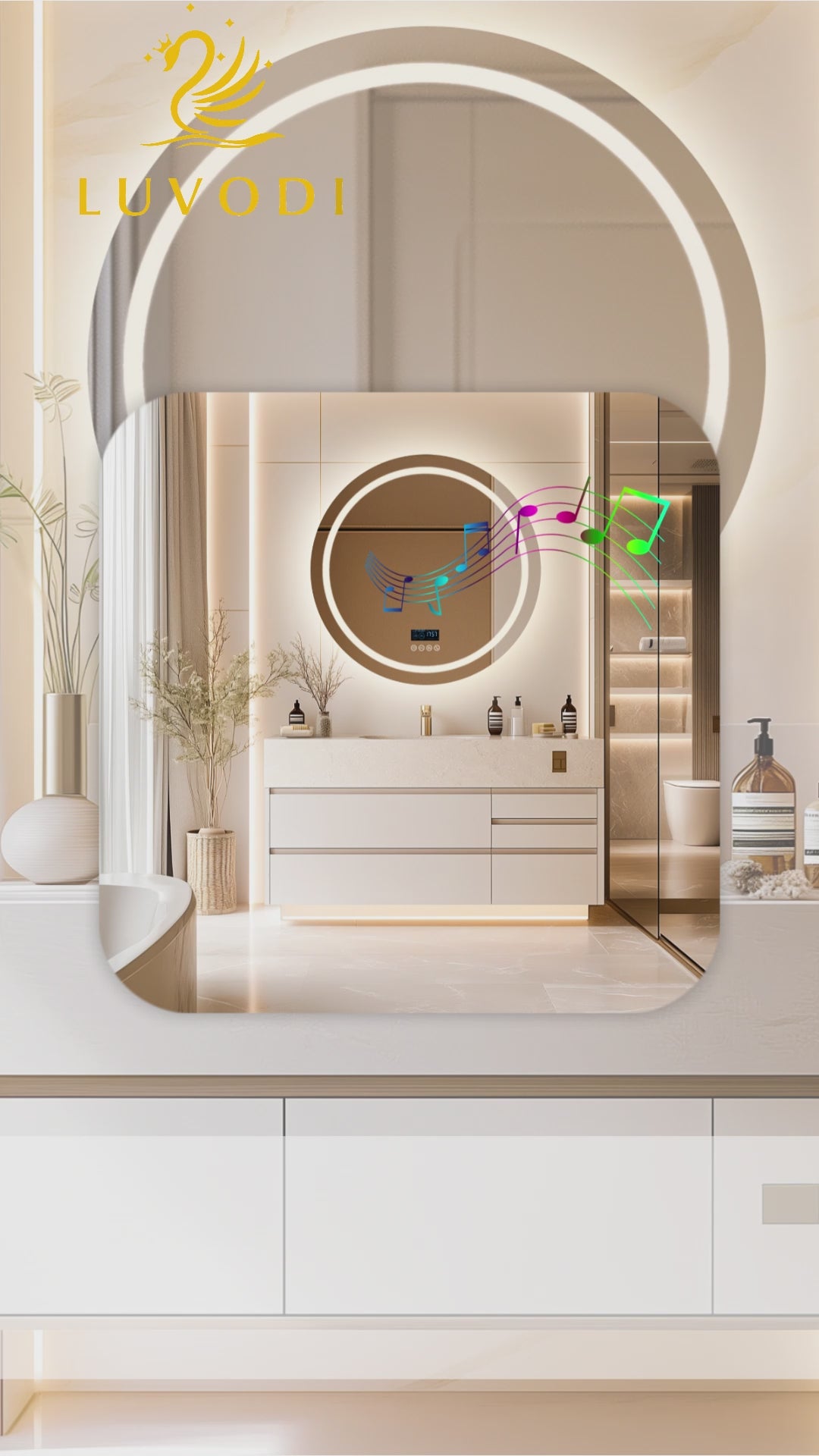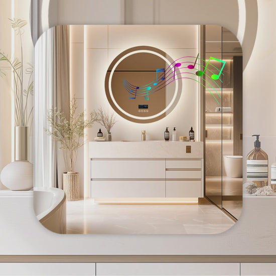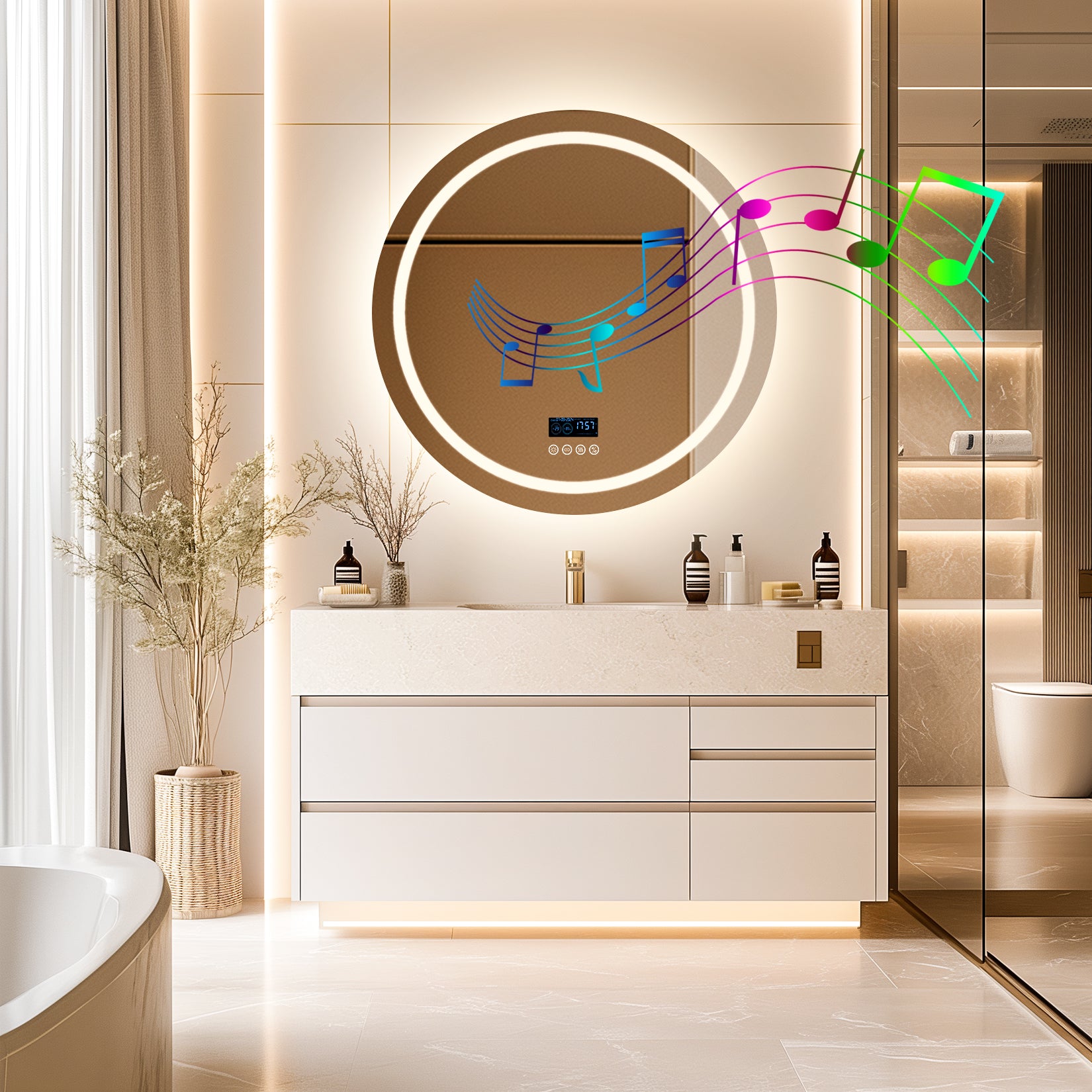 LUVODI Round LED Bluetooth Bathroom Mirror with Smart Display 80x80cm