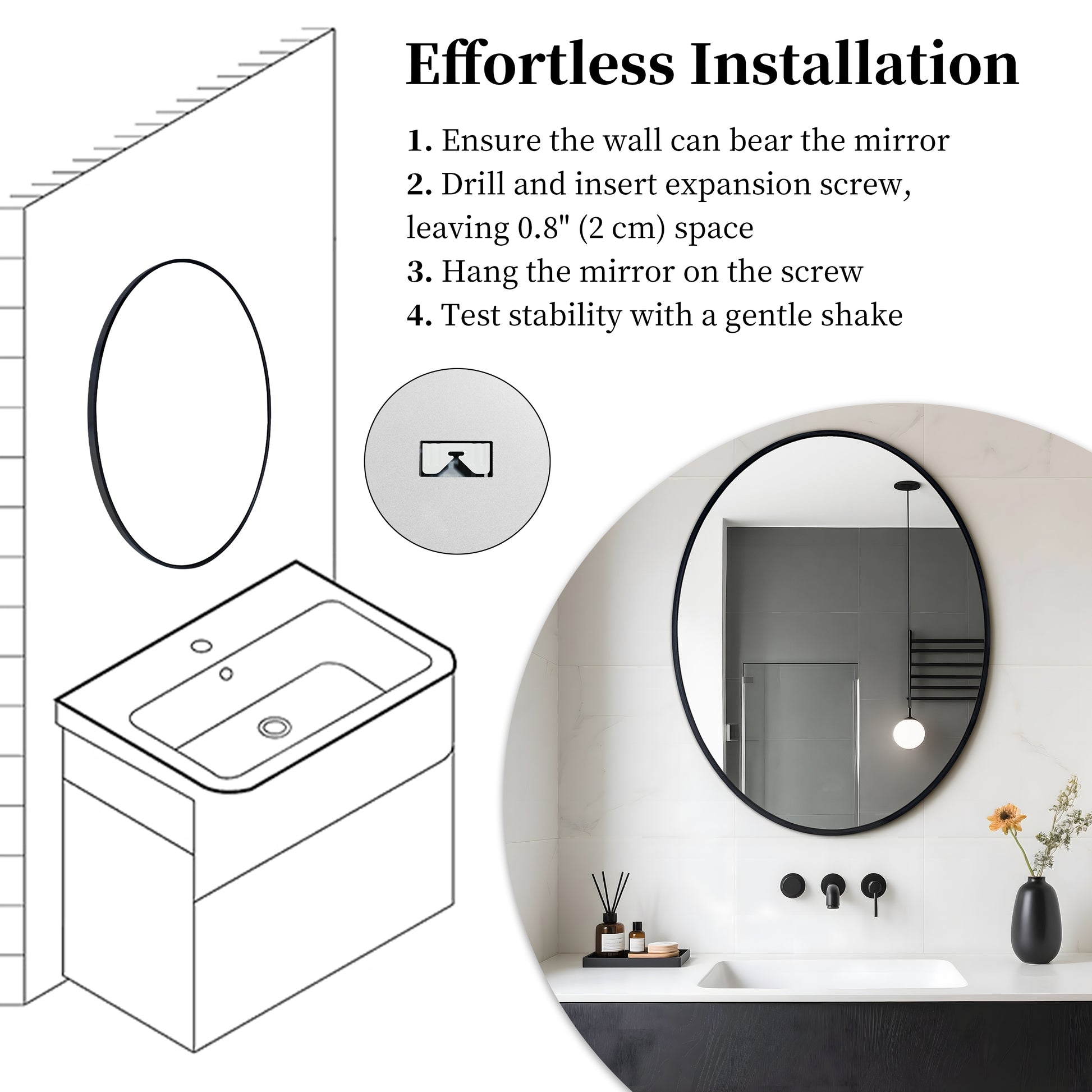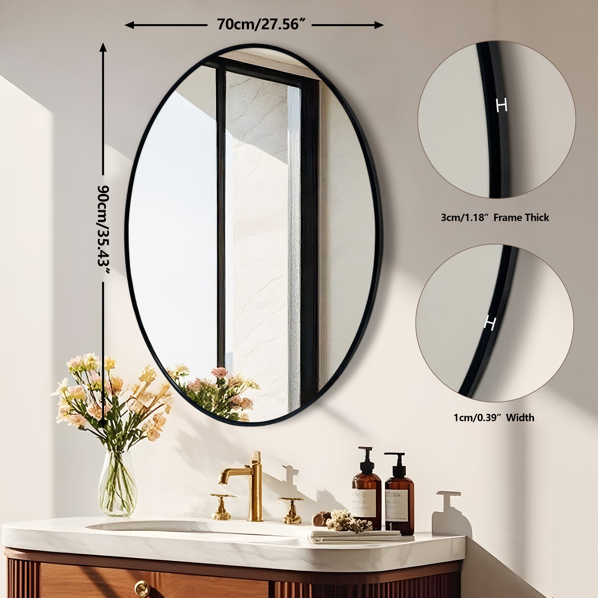 Oval Wall Mirror with Black Frame for Living Room, Bedroom