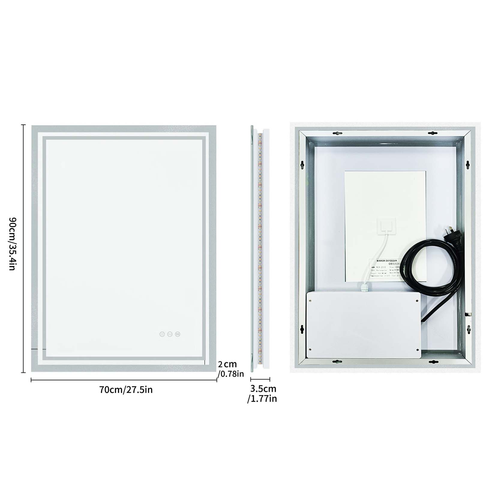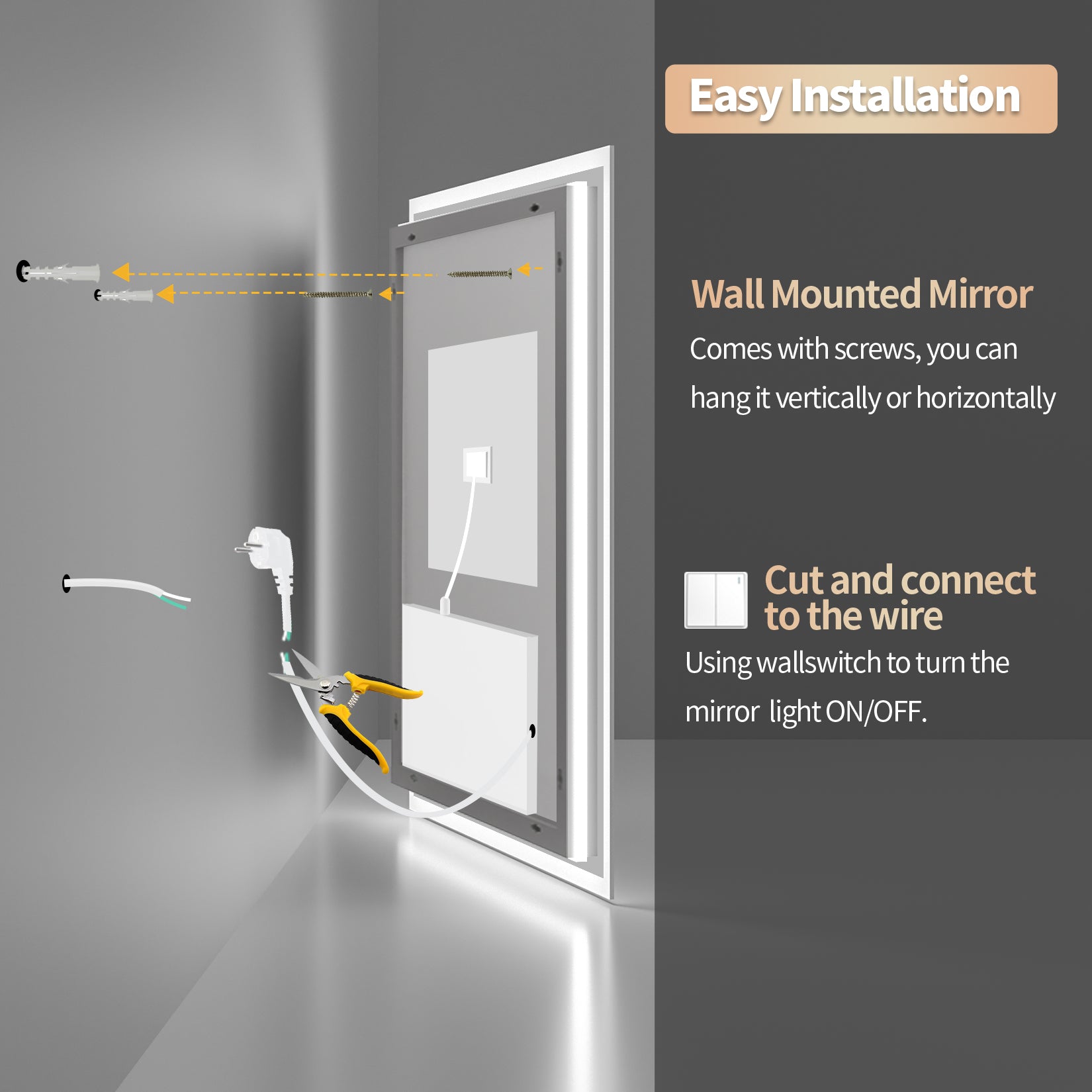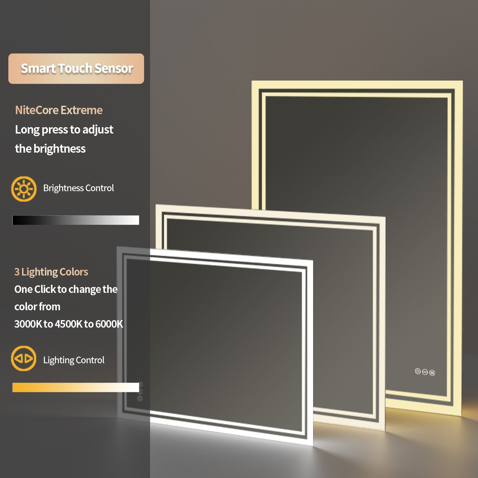 LUVODI Rectangular LED Bathroom Mirror 3Color Defogging Smart Mirror(Glowing Outer Edge)