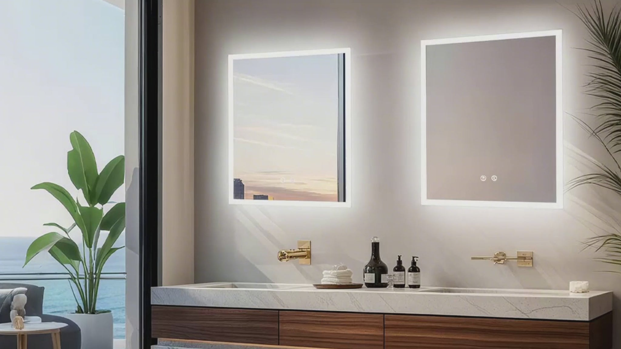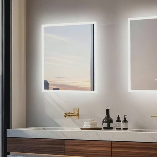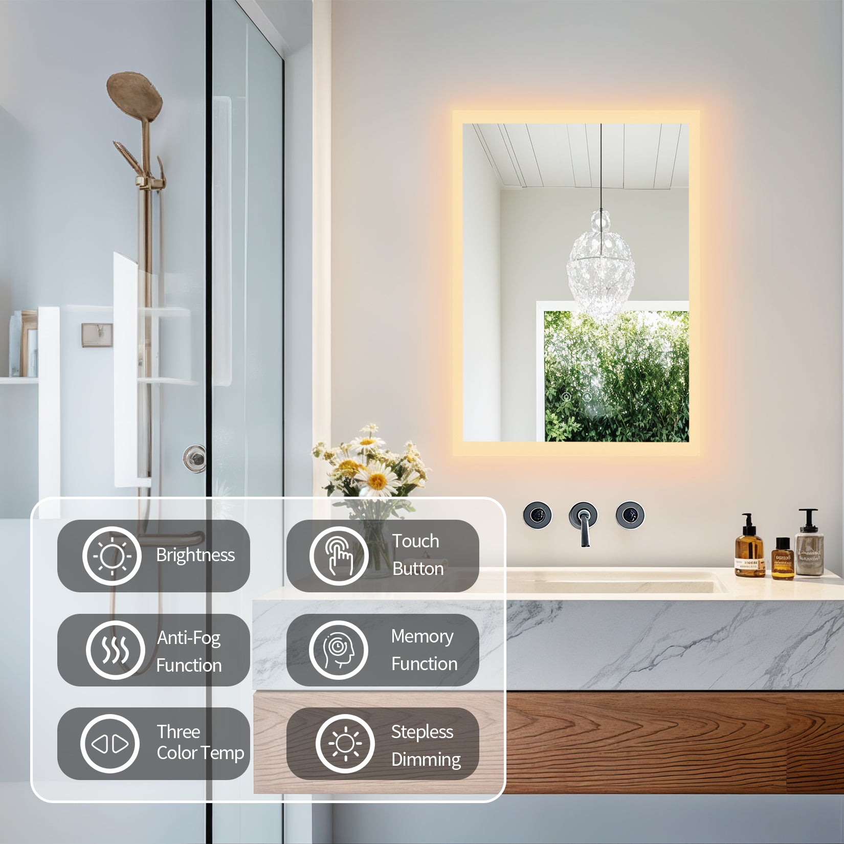 LUVODI Rectangular LED Bathroom Mirror with Lights, 2 Buttons (Glowing Outer Edge)