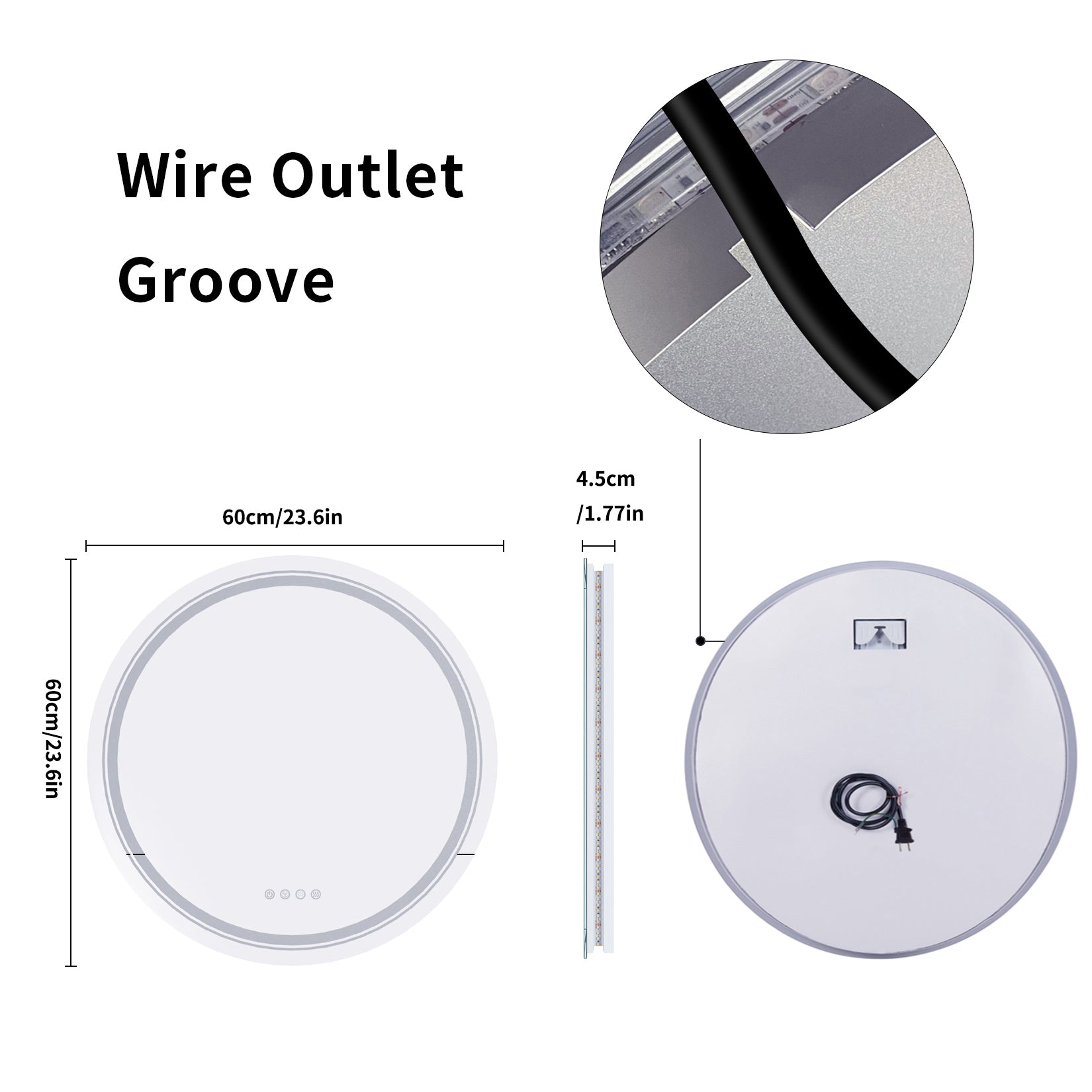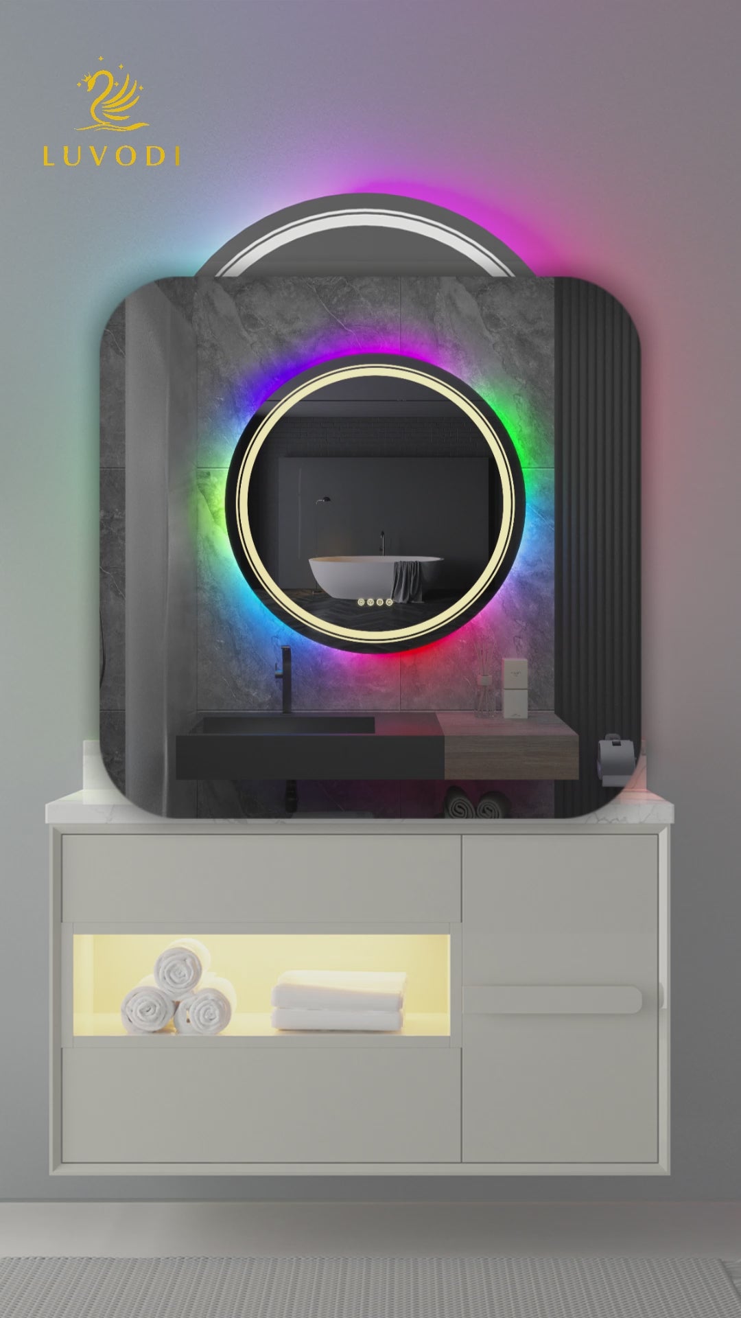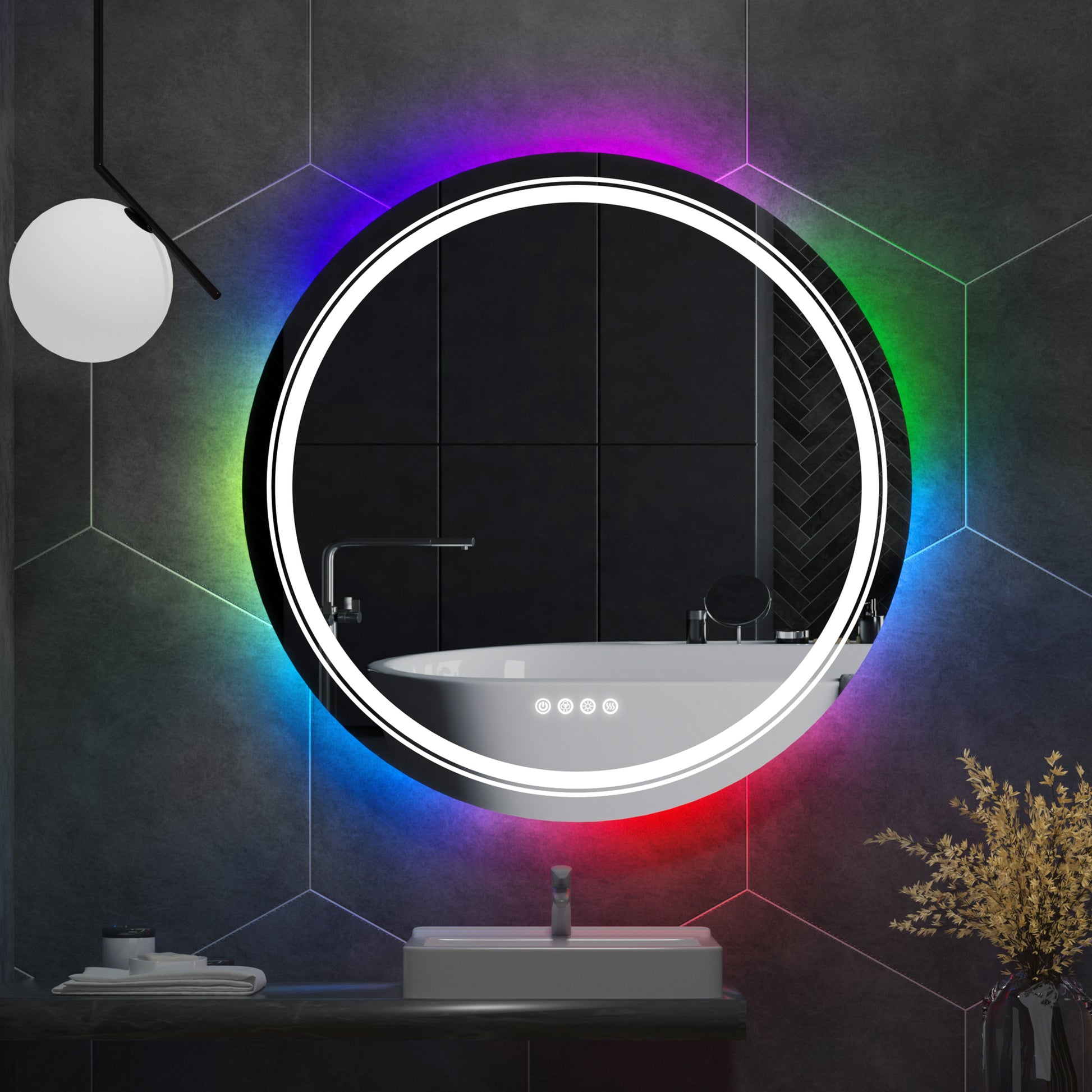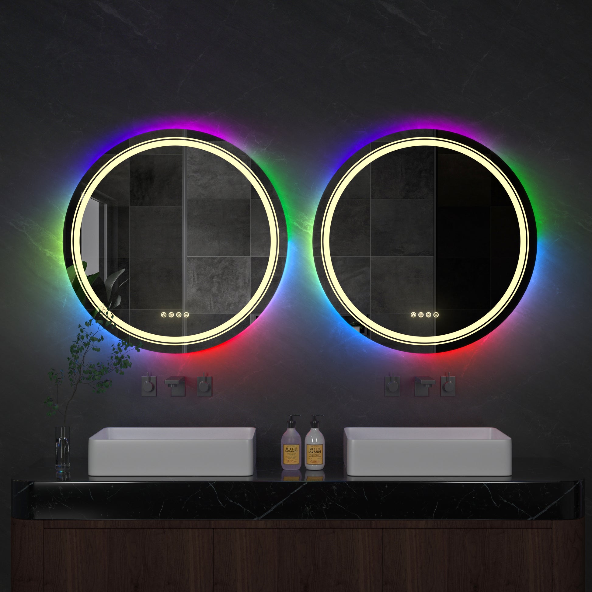 LUVODI Round LED Bathroom Mirror with 8 RGB Backlit 3 Front Light Color Smart Defogging Touch